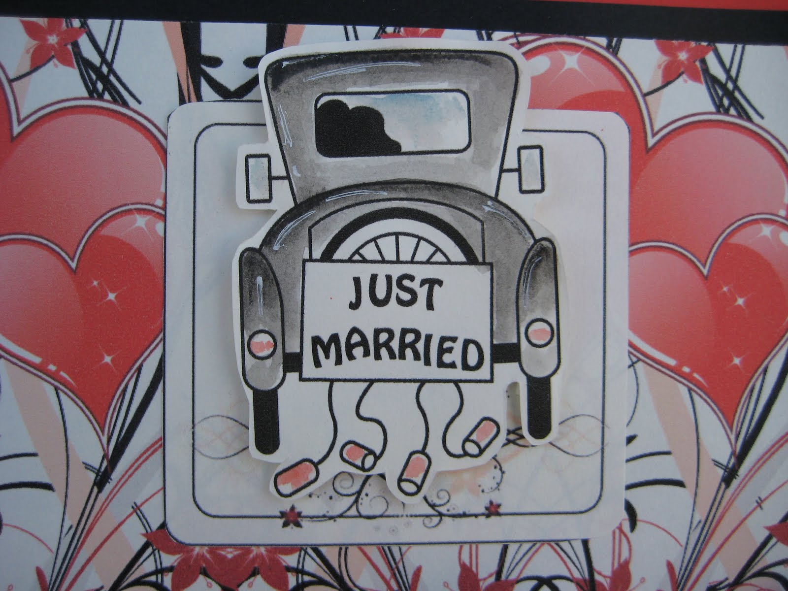 Here I am again with my DT for Polka Doodles.This week's theme is "black, white and a colour". My project is a wedding card, the papers and image are from Love & Cherish, I coloured the car with waterpencils and cut it out, the ribbon and charm are from stash.Have a nice weekend,